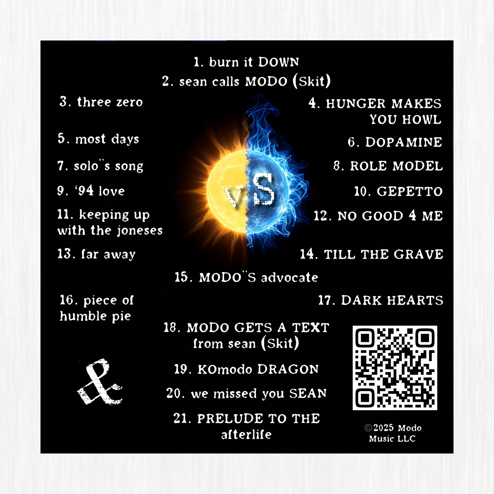 QR CODE ON BACK CAN BE SCANNED TO ALLOW YOU TO LISTEN DIGITALLY ON STREAMING APPS
